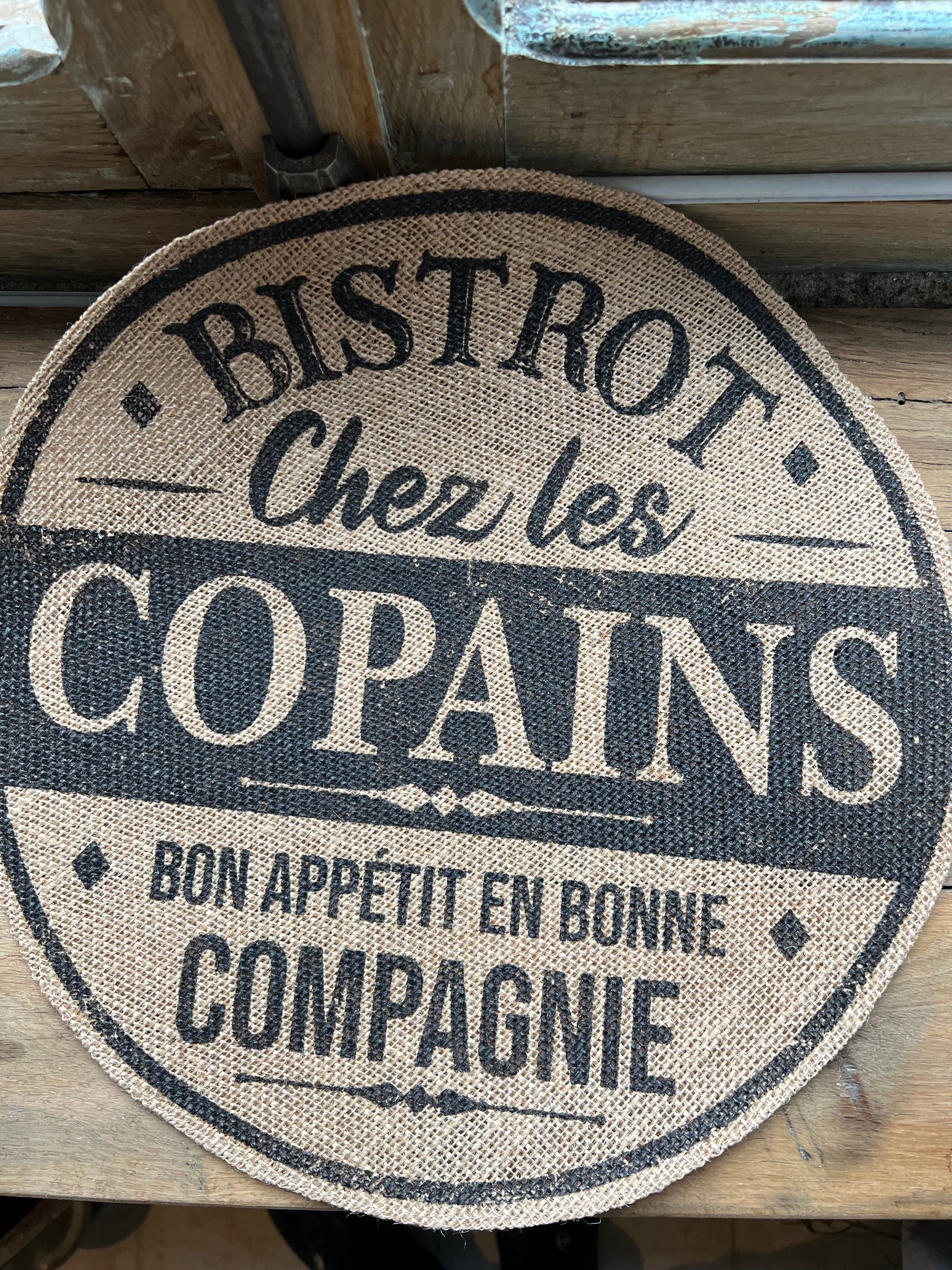 House of Friends Bistrot. Natural fiber round placemats, sold in set of 4.