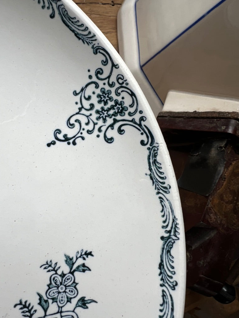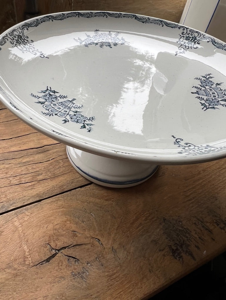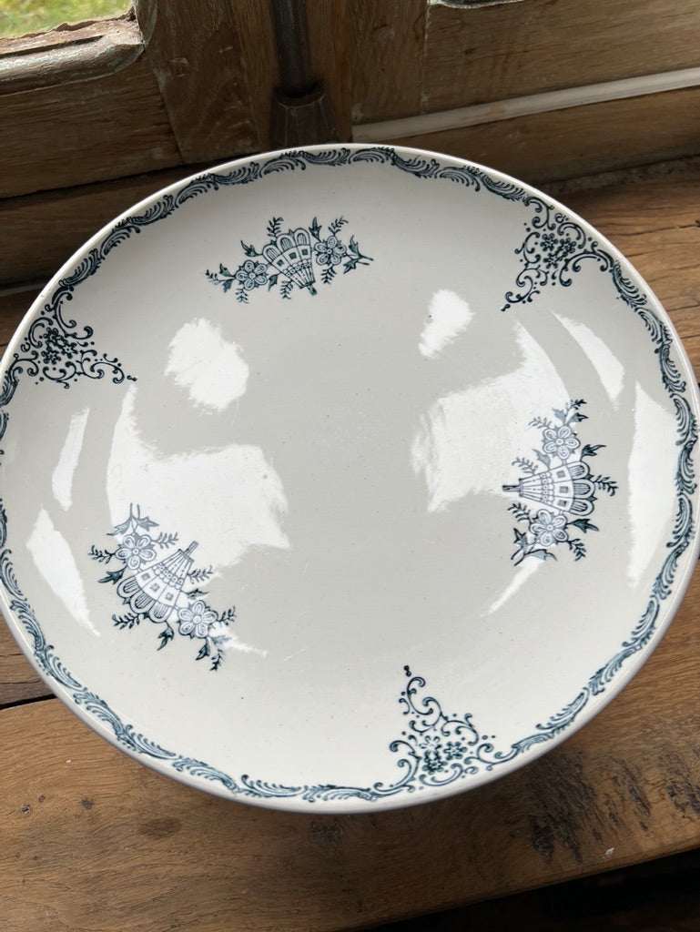 Navy on white glazed pottery. Gorgeous as a fruit bowl, candy dish or decorative piece. In excellent condition!