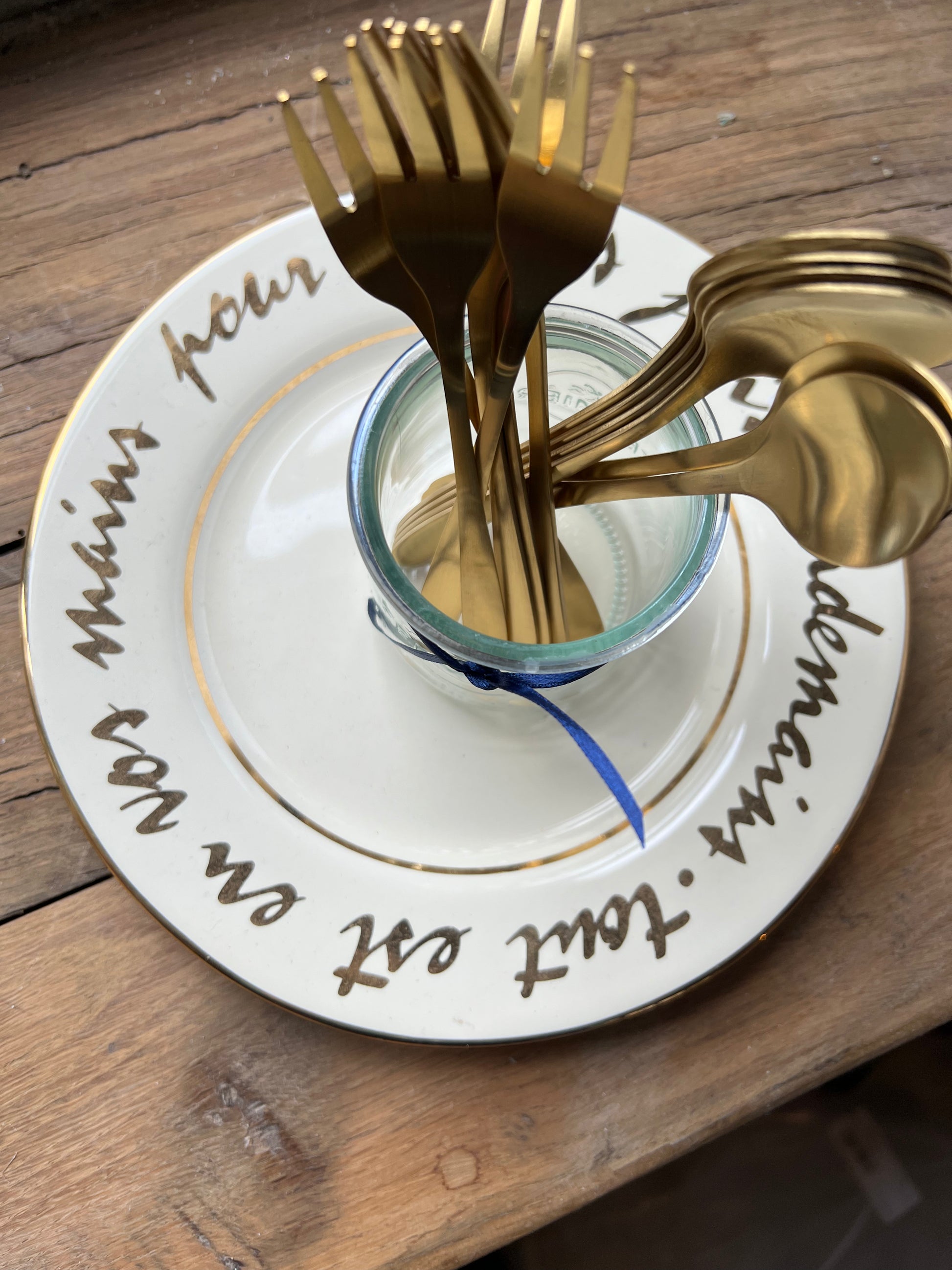 Brushed gold. Sold in sets of 6. Perfect for desserts, serving dips, eating yogurts or other small bites. Made of stainless steel. Dishwasher safe, hand dry as soon as the cycle is done to prevent spots.