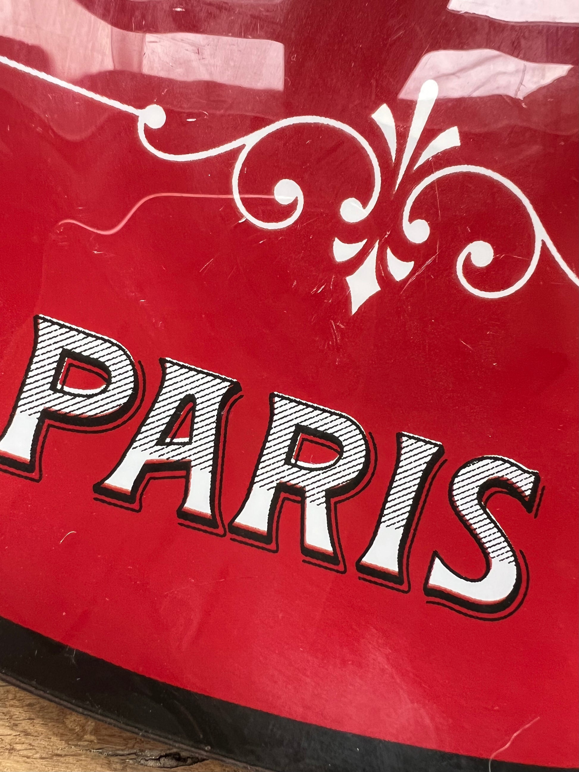 Classic red and black PARIS bistro colors! This frosted glass serving plate is elegant and modern with a vintage feel all at once. Coordinates nicely with our PARIS serving tray.